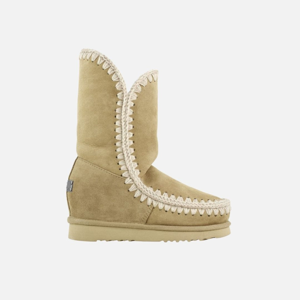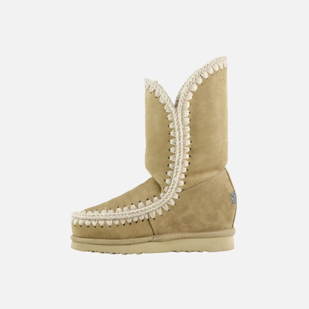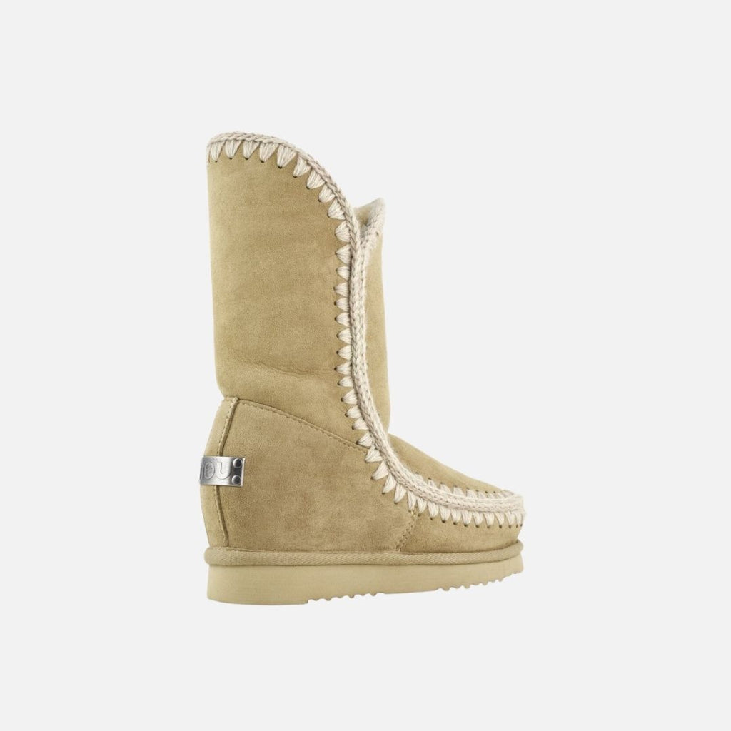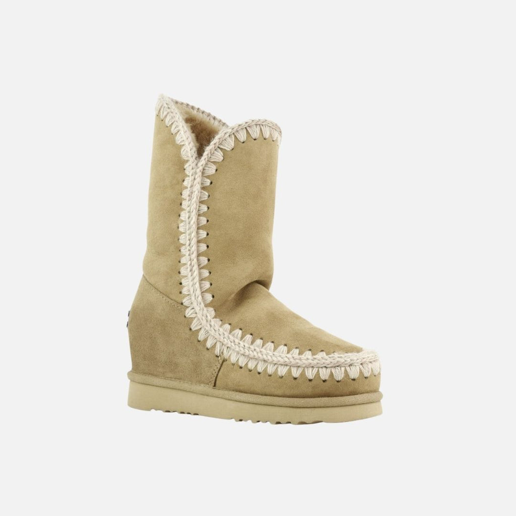 The Eskimo thin wedge line has a hidden 5cm heel and is incredibly comfortable. Expertly crafted from soft, double-faced shearling with the brand's signature crochet stitching, a supportive heel cup and EVA sole, the Eskimo high wedge is available in a wide range of suede and leather finishes. metal. Height 30.5 cm.