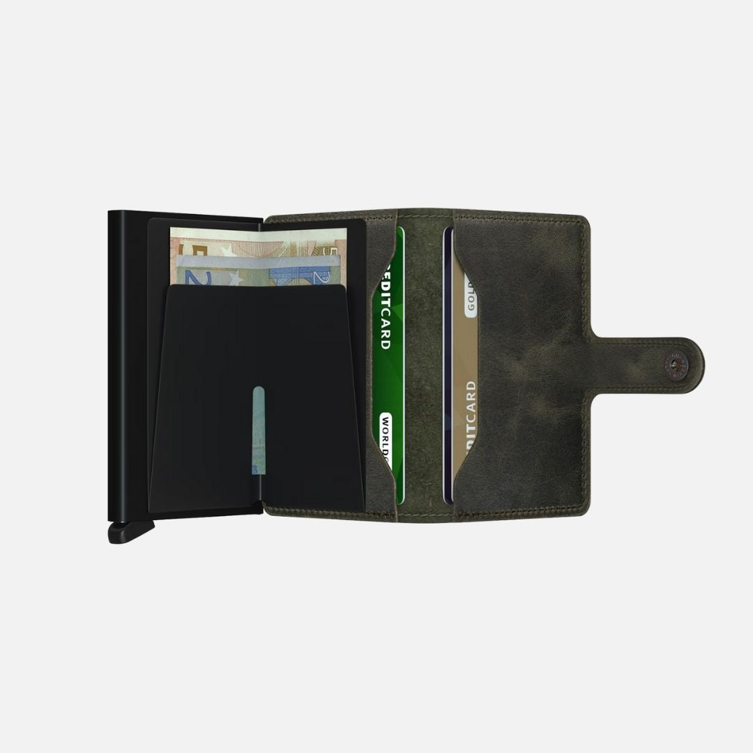 Small in size but with a surprisingly large capacity: the Miniwallet meets all needs. The outer cover can contain bills, tickets and cards, while the aluminum Cardprotector allows the cards to be removed with a simple movement, preventing them from being bent, broken or read without us realizing it.