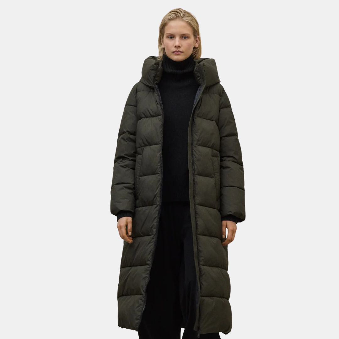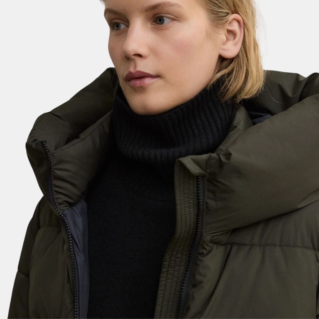 El Abrigo Aranda está fabricado con un tejido principal de 100% Poliéster reciclado. Tiene un forro de 100% Poliéster reciclado y relleno PrimaLoft® de 100% Poliéster reciclado. El poliéster reciclado reduce el uso de recursos fósiles, emisiones de CO2 y consumo de agua y energía, al reutilizar residuos plásticos como botellas PET, manteniendo las propiedades del poliéster virgen.