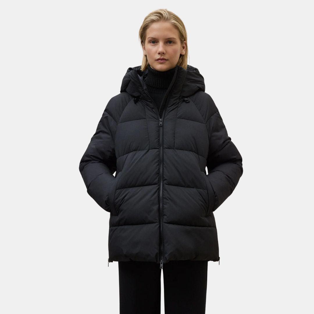La chaqueta Fuji está fabricada con un tejido principal de 100% Poliéster reciclado. Tiene un forro de 100% Poliéster reciclado y relleno de 100% Poliéster reciclado. El poliéster reciclado reduce el uso de recursos fósiles, emisiones de CO2 y consumo de agua y energía, al reutilizar residuos plásticos como botellas PET, manteniendo las propiedades del poliéster virgen.