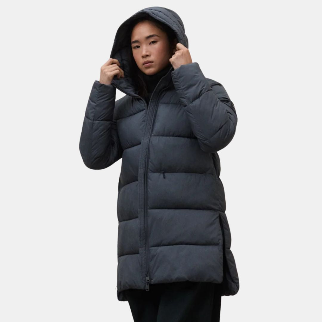 El abrigo Marangu está confeccionado con tejido principal 100% Poliéster reciclado, forro 100% Poliéster reciclado y relleno PrimaLoft® 100% Poliéster reciclado. El poliéster reciclado reduce el uso de recursos fósiles, emisiones de CO2 y consumo de agua y energía, al reutilizar residuos plásticos como botellas PET, manteniendo las propiedades del poliéster virgen.