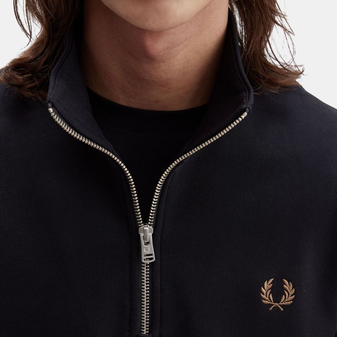 Fred Perry Half Zip Sweatshirt Black-Champagne