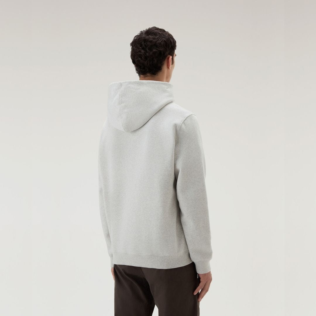 Woolrich Organic Cotton Script Hoodie Men's Light Grey Melange