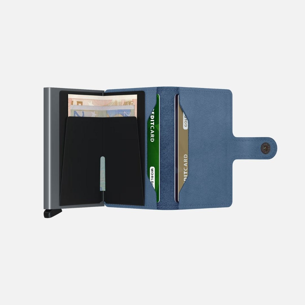 De petite taille mais avec une capacité étonnamment grande : le Miniwallet répond à tous les besoins. La couverture extérieure peut contenir des billets, des billets et des cartes, tandis que le Cardprotector en aluminium permet de retirer les cartes d'un simple mouvement, évitant ainsi qu'elles ne soient pliées, cassées ou lues sans que nous nous en rendions compte.