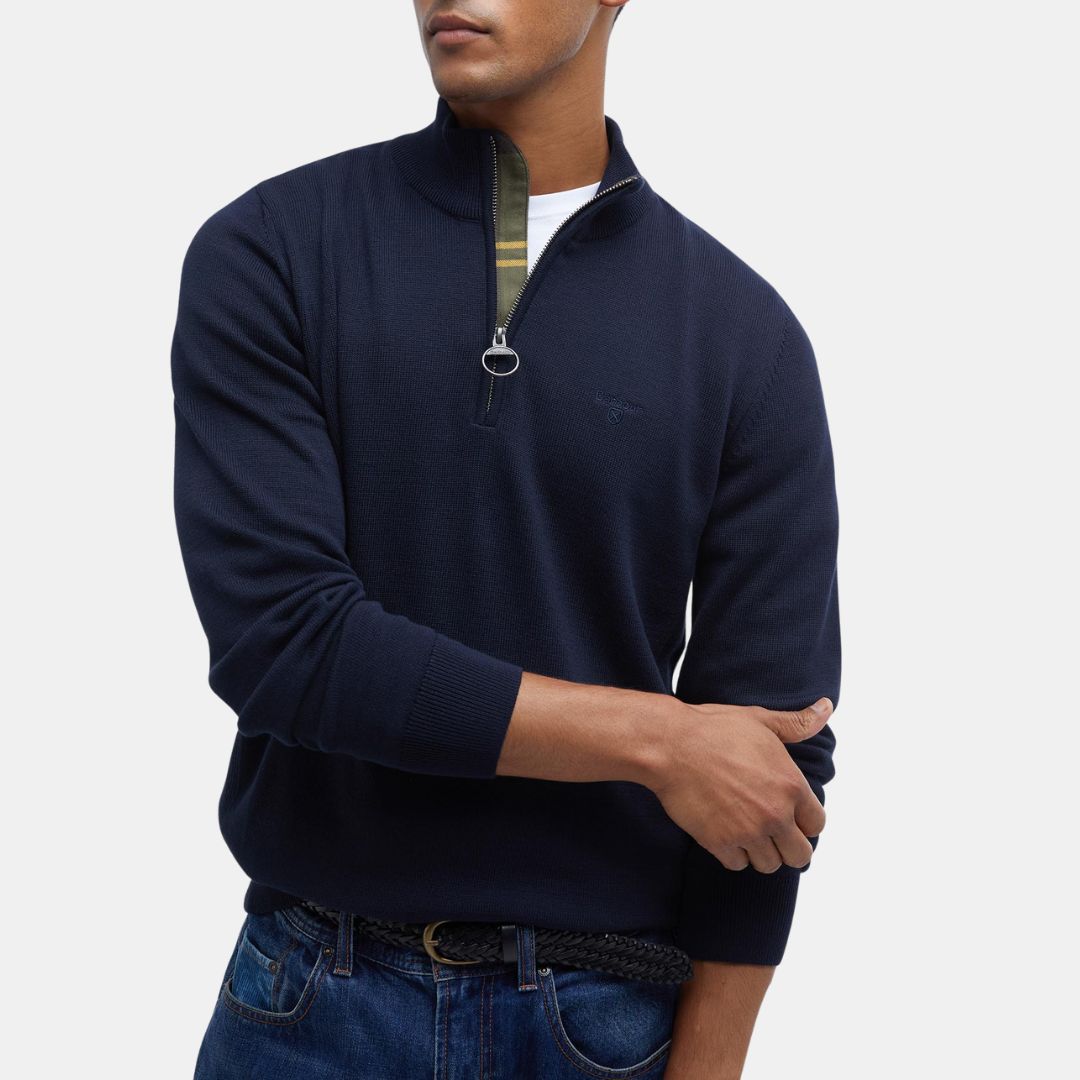 Un capo base dell'armadio, questo maglione con mezza cerniera è valorizzato da sottili dettagli Barbour. Realizzato in maglia leggera di cotone, la chiusura con cerniera è rifinita con tartan all'interno e presenta il caratteristico tirante ad anello, mentre un logo ricamato tono su tono sul petto completa il look.