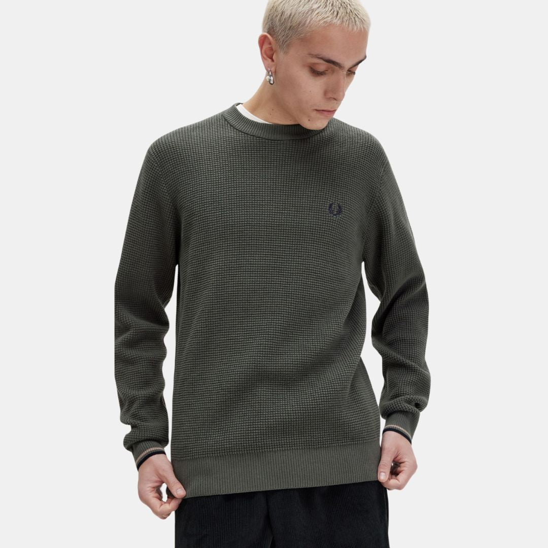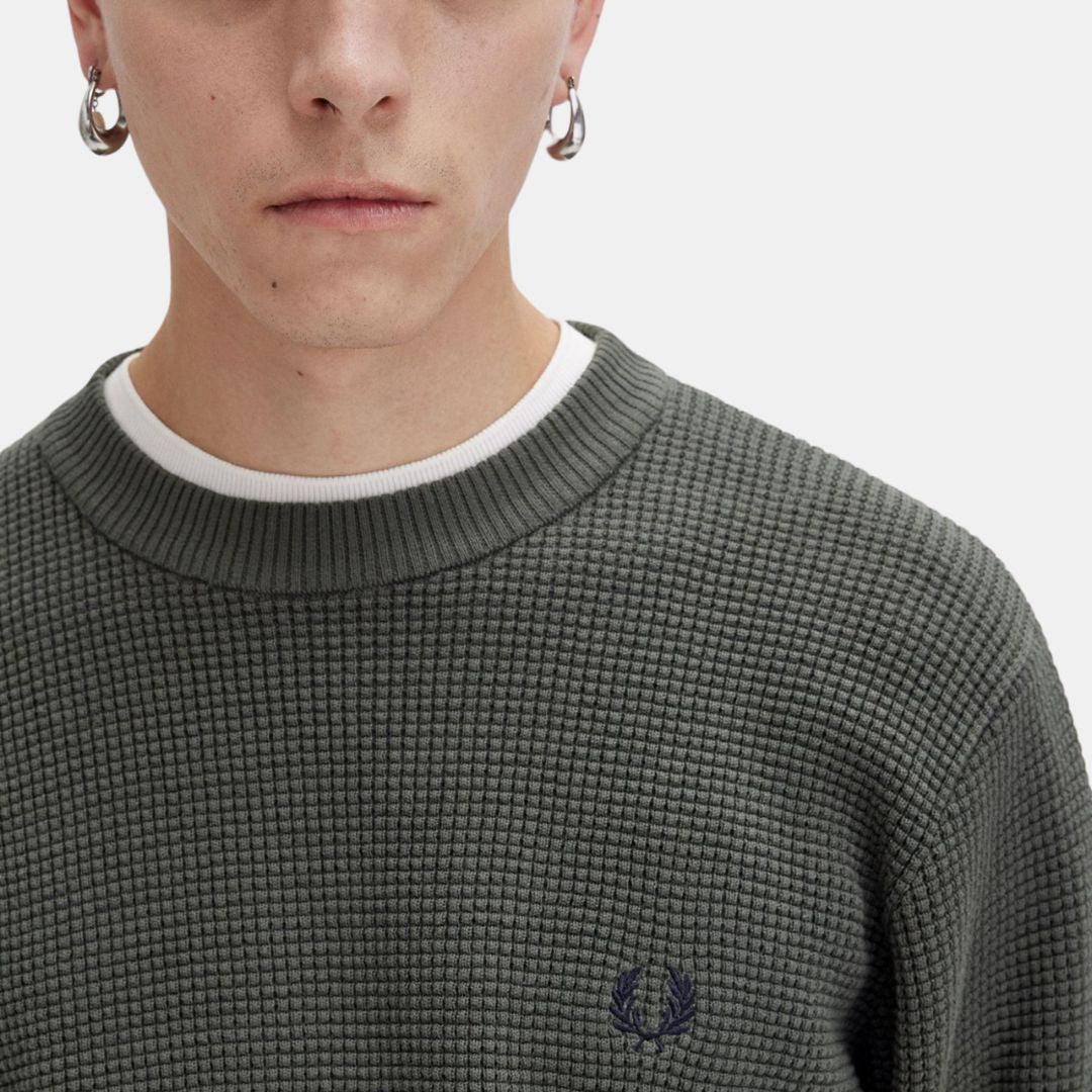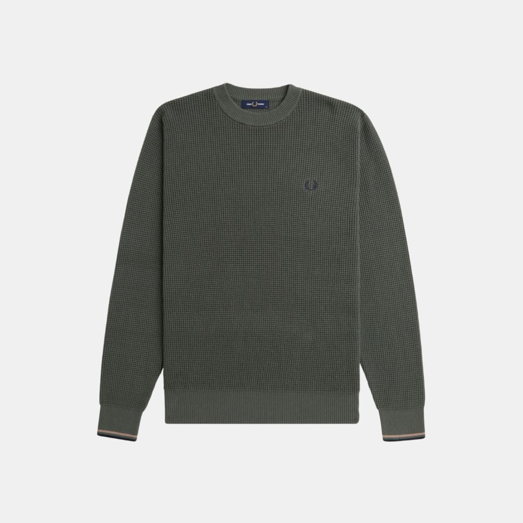 Fred Perry Jersey Waffle Stitch Jumper Field Green
