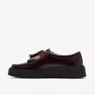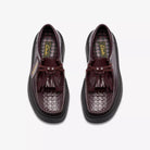 - Tomaia in pelle premium color uva con dettaglio di frange rimovibili sulla tomaia