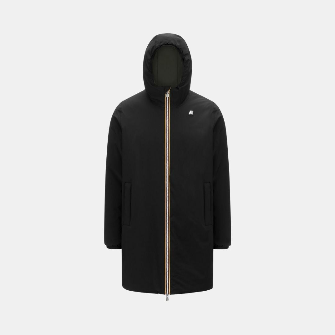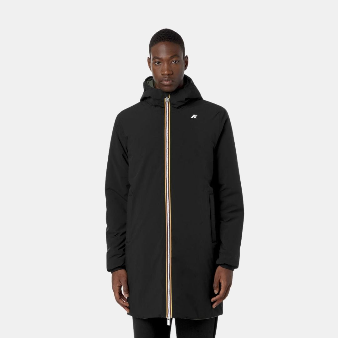 Het driekwart herenjack Jacob is de creatie van K-Way voor het tussenseizoen en de eerste koude winterdagen. Het ontwerp combineert stijl met functionaliteit en past perfect bij diverse outfits dankzij de veelzijdige omkeerbare constructie. De buitenlaag is gemaakt van elastisch waterdicht polyester, terwijl de binnenkant bestaat uit contrasterend winddicht polyester. De synthetische vulling zorgt voor optimaal comfort en de perfecte warmte, terwijl de getapete naden de koude lucht buiten houden.