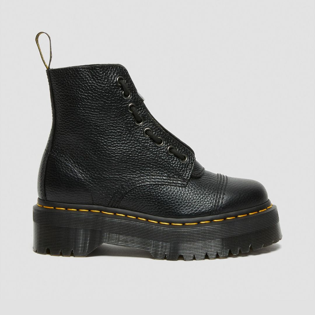 De indrukwekkende Sinclair laars is voorzien van een afneembare ritssluiting, het onmiskenbare gele stiksel en al het DNA van DM. Dit model dat het karakter van de DM belichaamt, staat op een imposante Quad-zool met platform. Een laars voor de meest gedurfde smaak.