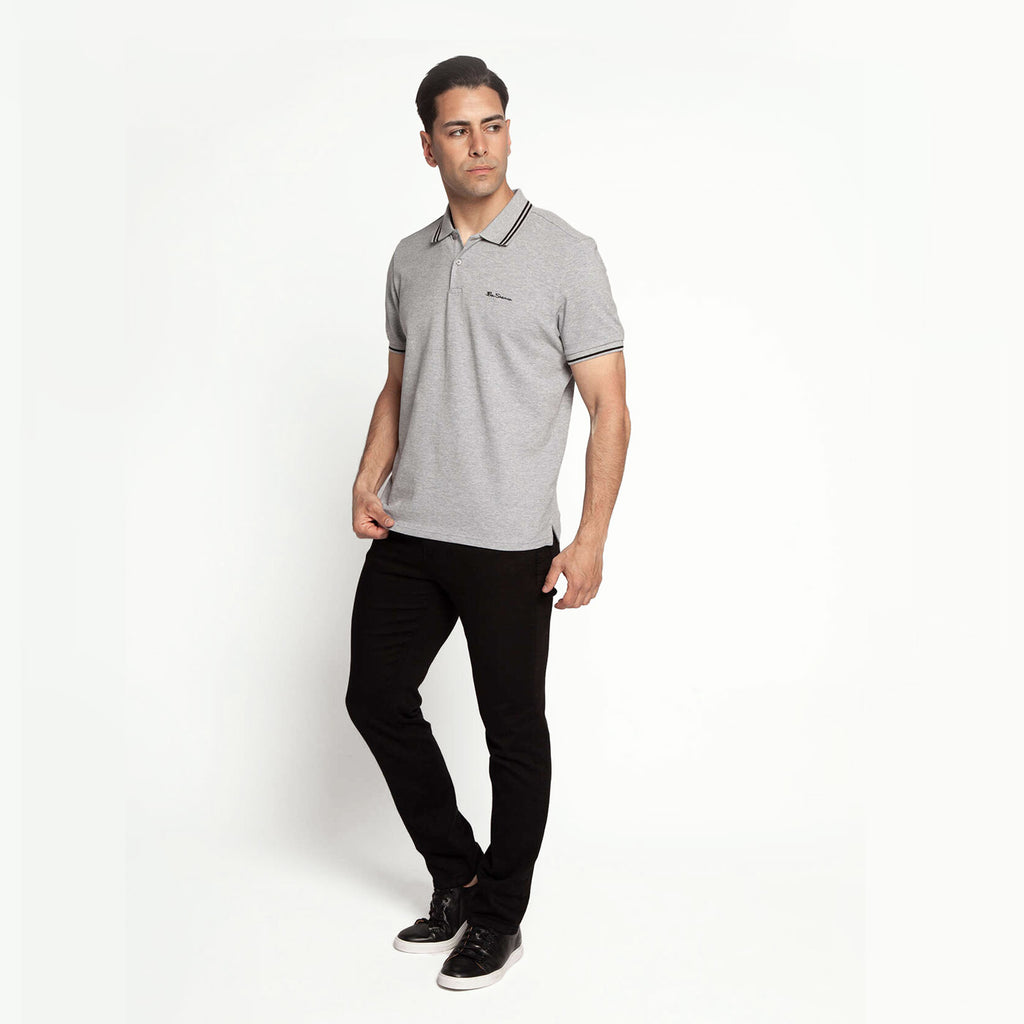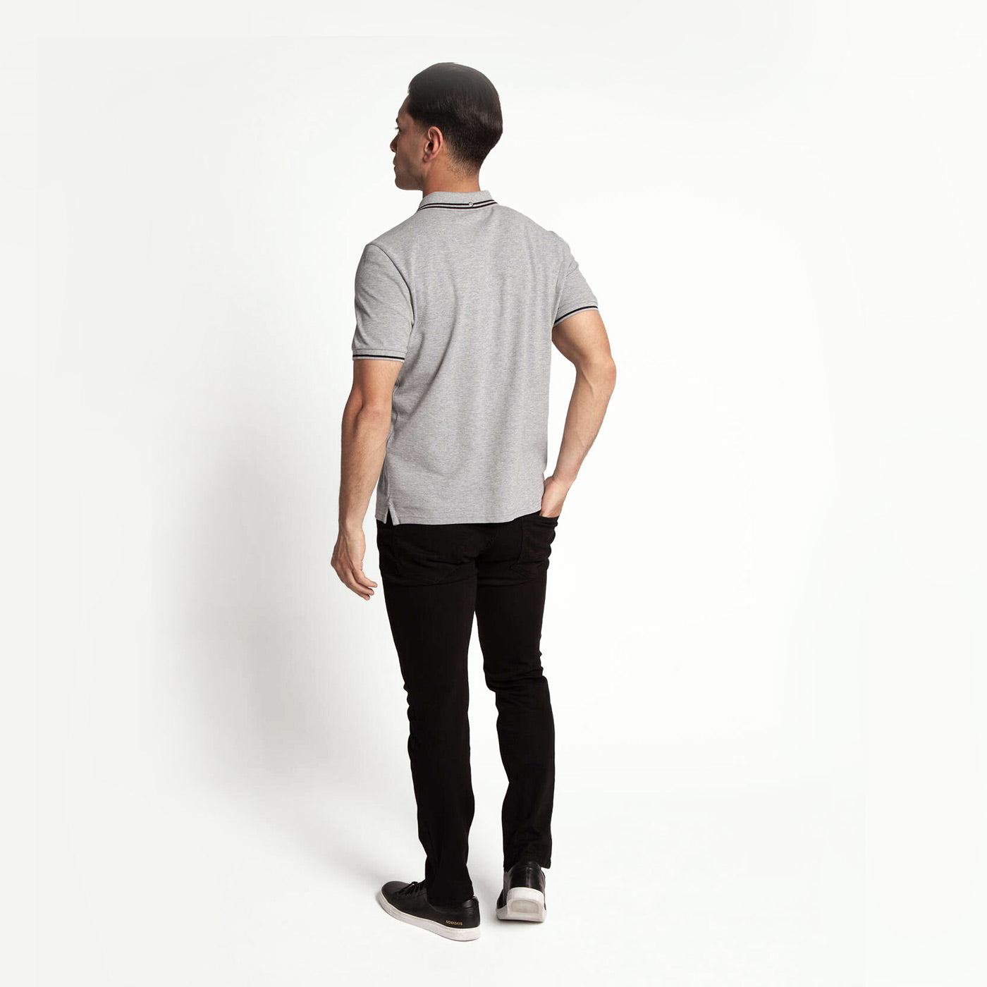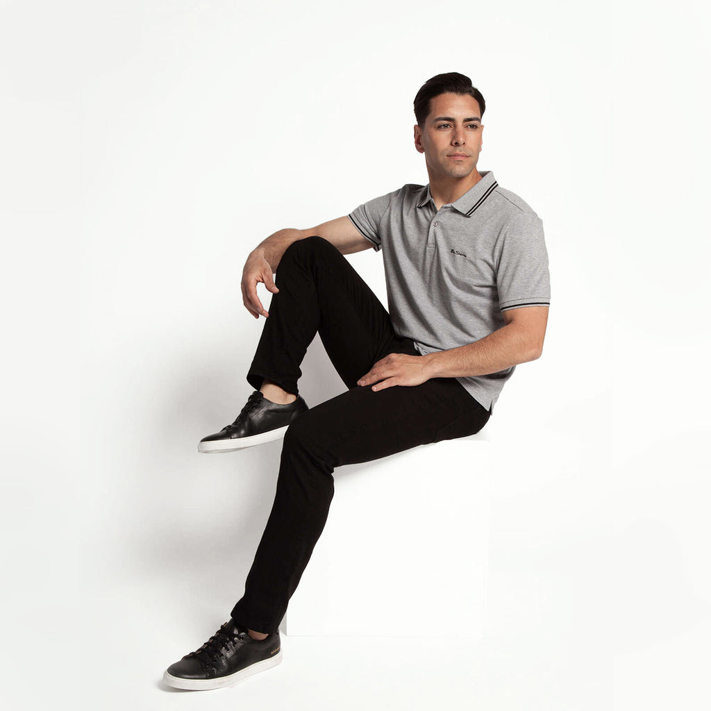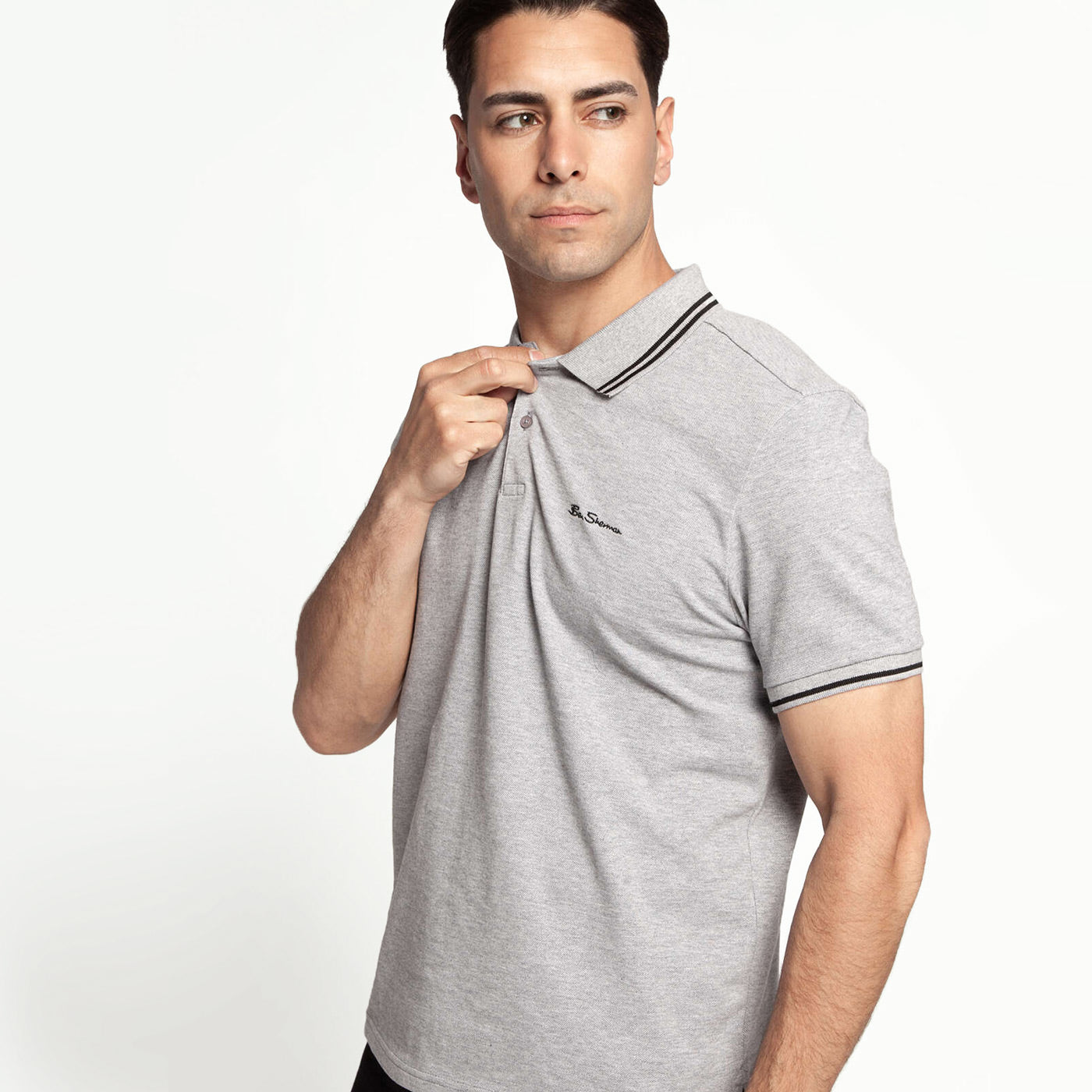 Polo exclusivo es un clásico polo de algodón para hombre con detalles de ribetes en contraste en el cuello y los puños. El polo está confeccionado con algodón orgánico y presenta un cierre de dos botones y un cuello de punto plano.