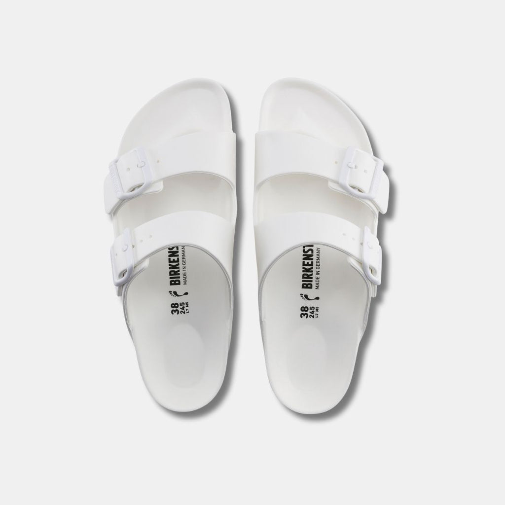 El modelo Arizona de BIRKENSTOCK es un auténtico clásico. Inspirado en la sandalia de corcho, este modelo está hecho de EVA. El material plástico EVA es de alta calidad, no tiene olor ni sustancias contaminantes y reúne muchas características positivas: es muy ligero, de alta elasticidad, resistente al agua, es respetuoso con la piel y ofrece el confort habitual de BIRKENSTOCK.