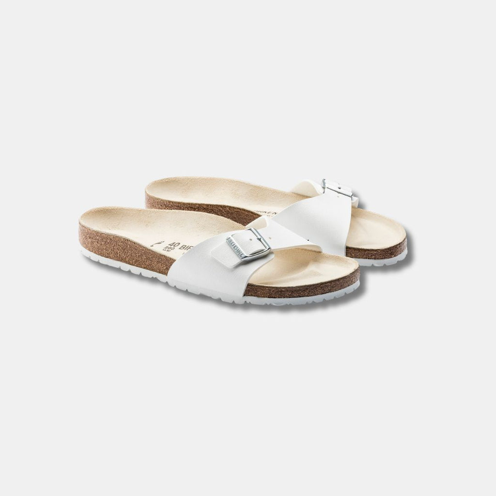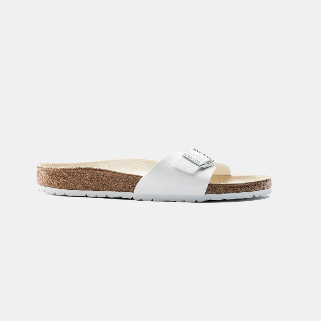 La sandalia BIRKENSTOCK original. Una correa, una hebilla y una plantilla de corcho contorneada se combinan magistralmente para crear el Madrid. La parte superior está hecha del material sintético Birko-Flor® resistente y agradable para la piel.