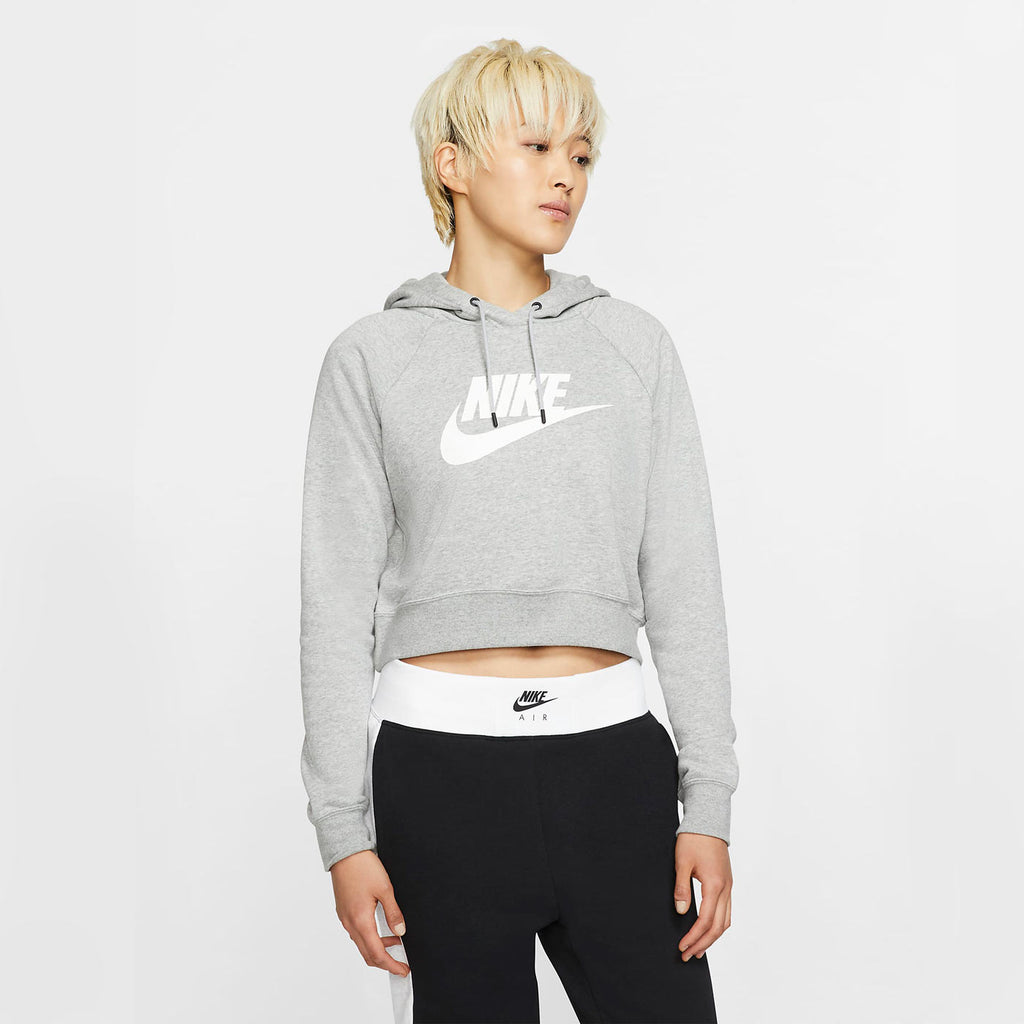 Manténgalo simple con la sudadera corta con capucha Nike Sportswear Essential para mujer. Luciendo un ajuste recortado para una apariencia versátil, cuenta con tela de vellón semicepillado para una sensación ligera y suave.