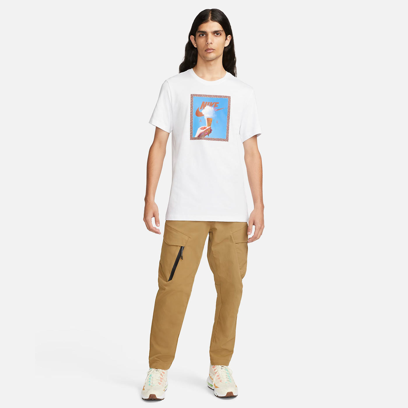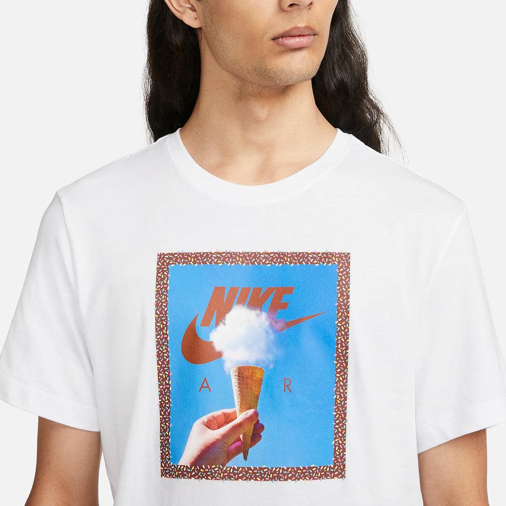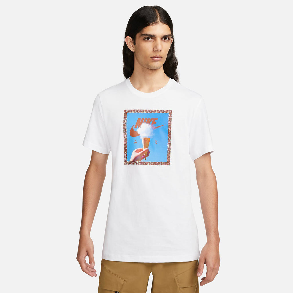 La camiseta Nike Sportswear de ajuste clásico está confeccionada con algodón a fin de ofrecer una sensación de familiaridad desde el primer momento.Las virutas y la versión innovadora del logotipo Futura Air aportan un toque sabroso e irresistible al estampado.