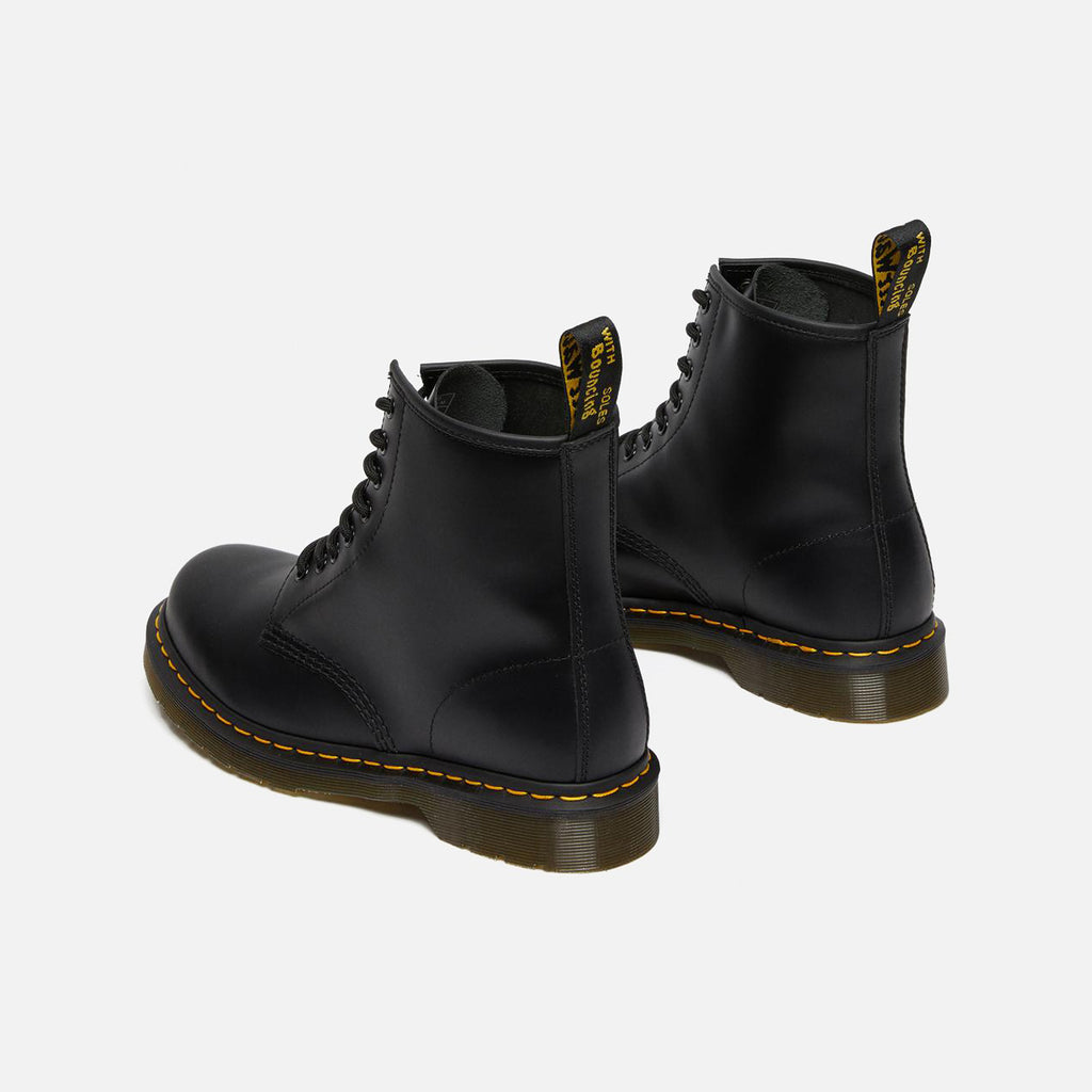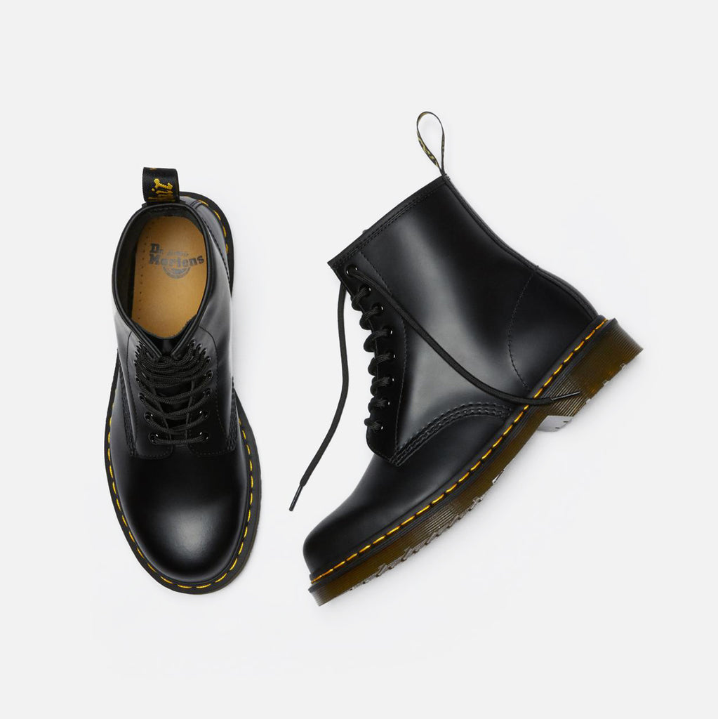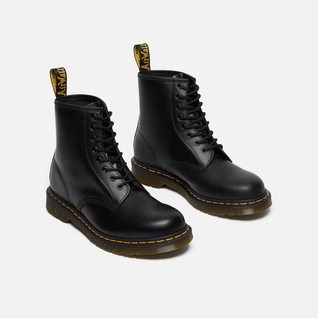 La bota 1460 de 8 ojales es la bota Dr. Martens Original. Nacida el 1 de abril de 1960, y de ahí su nombre, se reconoce al instante gracias al característico pespunte amarillo, la suela acanalada y el tirador de talón. Por su comodidad y durabilidad, esta bota fue inicialmente la preferida de los trabajadores esenciales cuyas tareas implicaban largas horas de pie. Hoy, es un pilar para músicos y pioneros de la moda de todo el mundo que han llevado la bota de la calle al centro del escenario. A todas partes. La puntera ancha y redondeada, y la suela con cámara de aire garantizan comodidad desde el alba hasta el acaso. Su piel Smooth se amolda a la forma de tu pie. Una bota única.