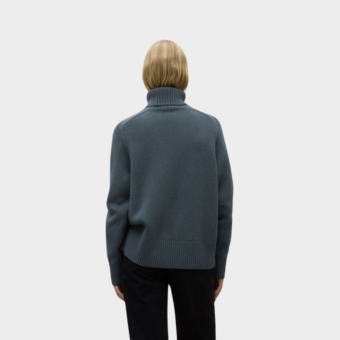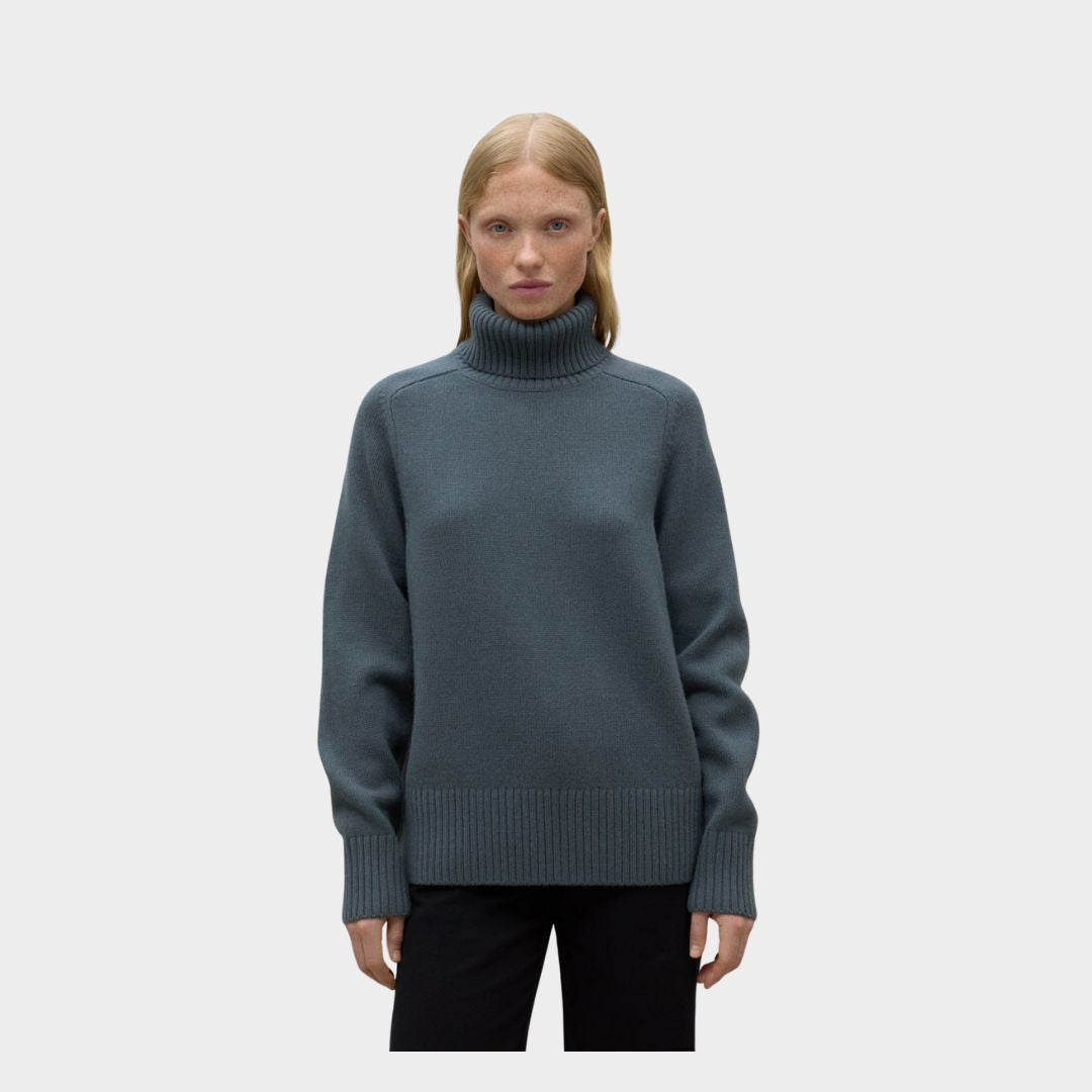El jersey Caqui de cuello alto es monomaterial de lana reciclada, la alternativa que usamos en ECOALF para evitar el uso de fibras vírgenes. Un jersey muy suave que impulsa la economía circular que te abrigará este invierno.