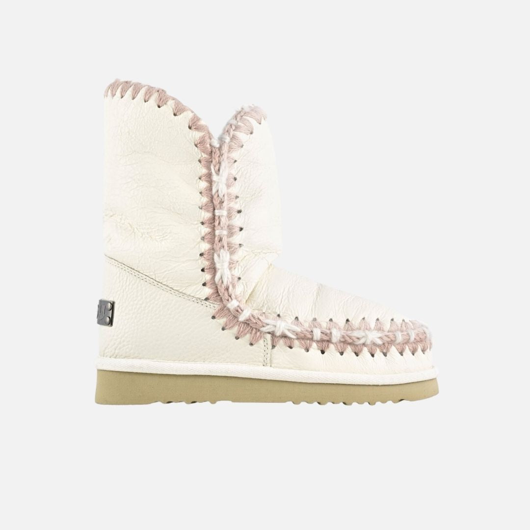 Las Eskimo 24 con costuras de lana en 3D y acabado de cuero blanco waxi. Fabricadas a mano por manos expertas con suave piel de oveja genuina de doble cara y los detalles de lana tejidos a mano característicos de la marca. El soporte de apoyo para el talón y la suela exterior de EVA hacen que este modelo sea increíblemente cómodo y resistente. Altura 24 cm. Regular fit.
