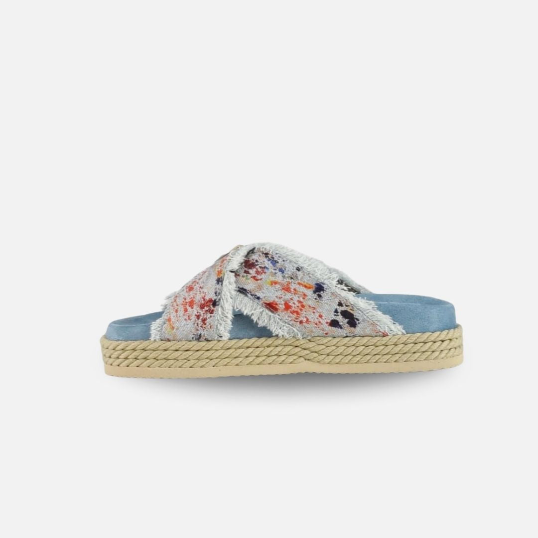 Mou Eva Sandal Criss Cross Rope Sandal Metallic Denim Delave