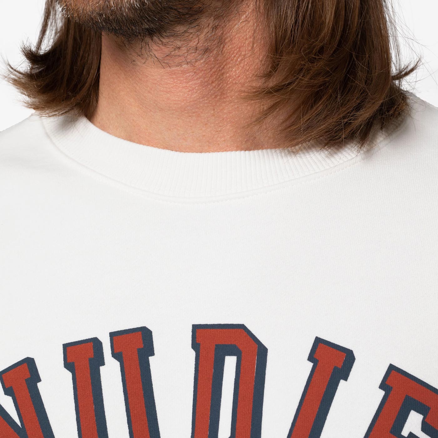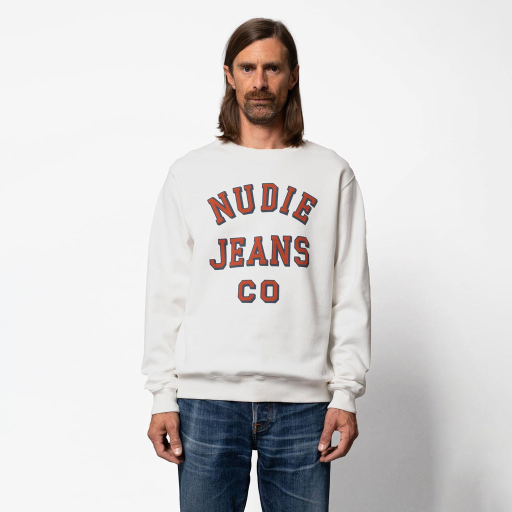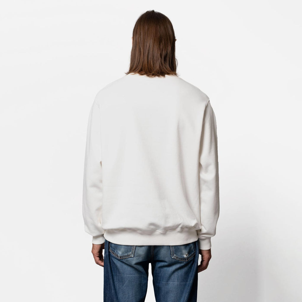 Esta sudadera de cuello redondo confeccionada en punto orgánico bastante pesado pero al mismo tiempo suave y flexible con interior cepillado. Lasse tiene un ajuste cuadrado regular con una silueta que te recuerda a los años 80 si recuerdas esos. En el pecho, colocamos un gran logotipo impreso.