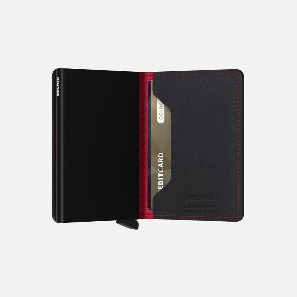 Gracias a su perfil delgado, la Slimwallet cabe perfectamente en todos los bolsillos. La cubierta exterior se corta con una longitud más larga para crear más espacio para tarjetas, billetes y tickets. El corazón del producto es el Cardprotector, cuyo mecanismo permite extraer las tarjetas con un simple movimiento, evitando que se doblen, rompan o lean sin que nos demos cuenta.