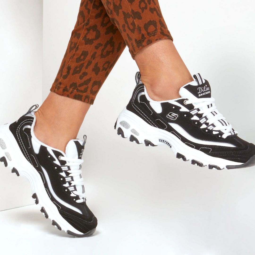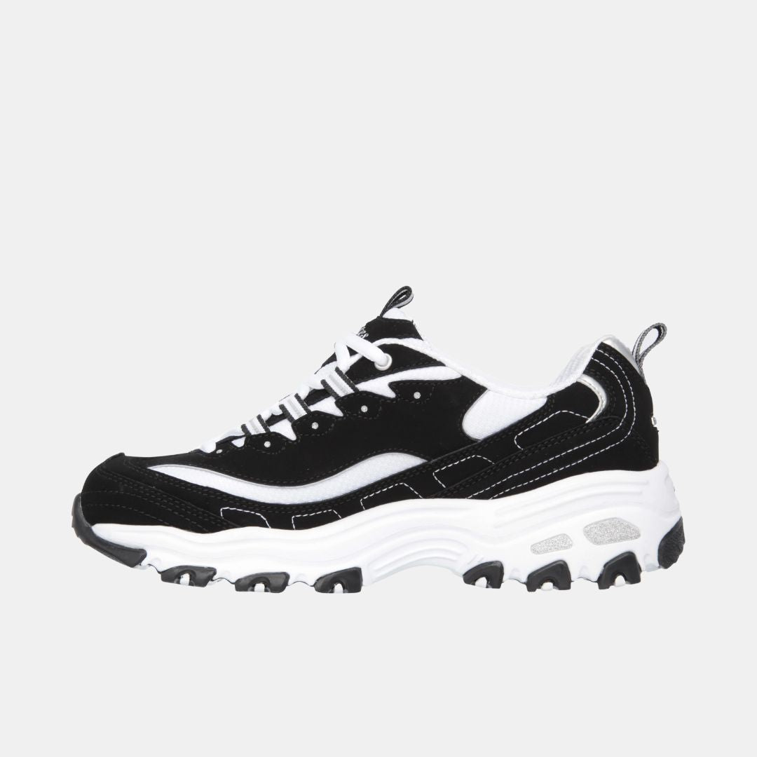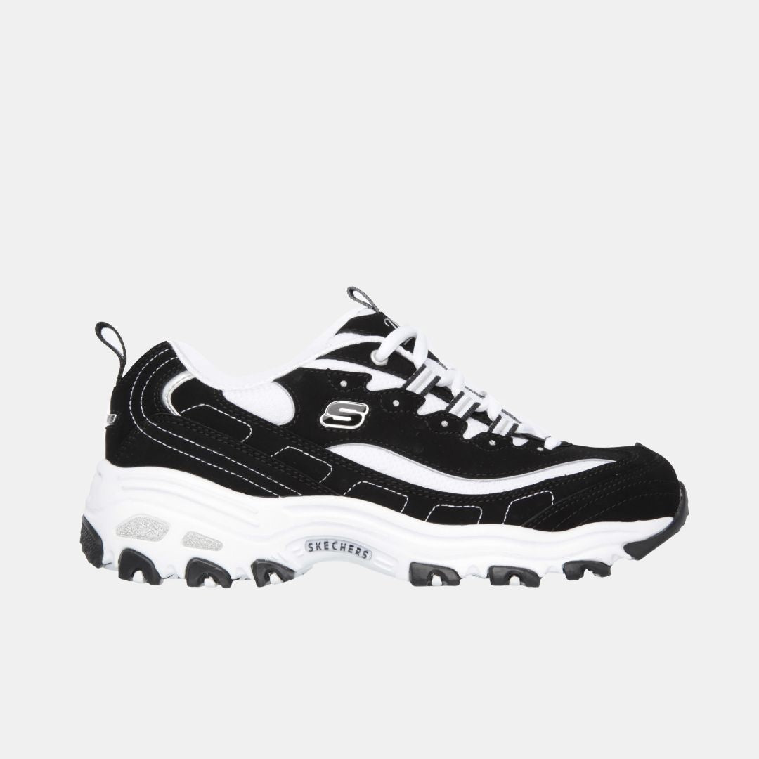 Um visual clássico atualizado com o conforto dos Skechers D'Lites® - Biggest Fan. Modelo moderno com atacadores, com parte superior em pele trubuck e malha com acabamento sintético e palmilha com amortecimento SKECHERS Air Cooled Memory Foam®.