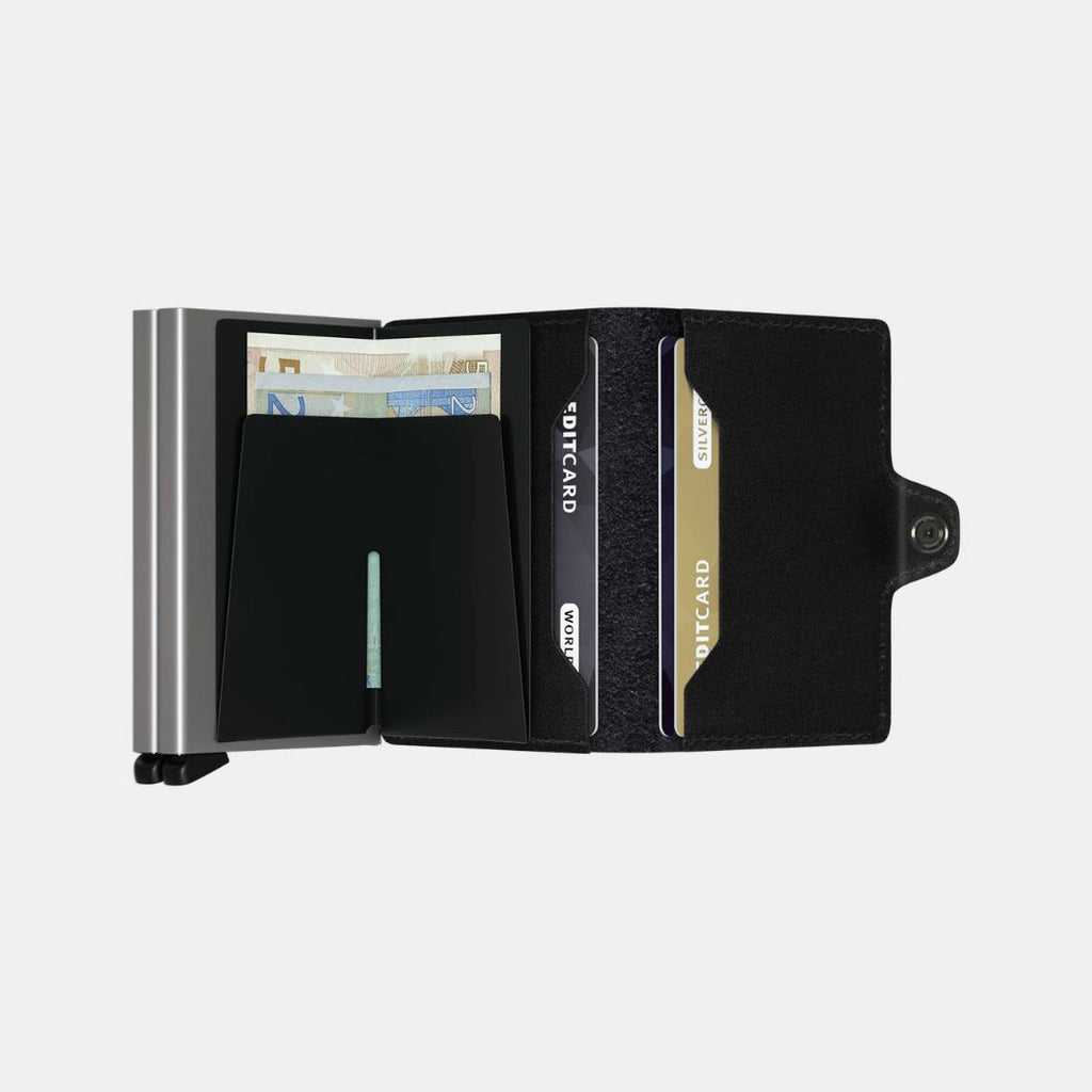 Com dois protetores de cartão para armazenar o dobro de conteúdo, o Twinwallet pode transportar até 16 cartões, notas e recibos, mas ainda mantém seu tamanho compacto. Equipada com um fecho robusto e uma capa exterior resistente para guardar cartões, notas e recibos, esta carteira é a solução ideal para quem precisa de mais espaço mas não quer abrir mão do tamanho compacto.