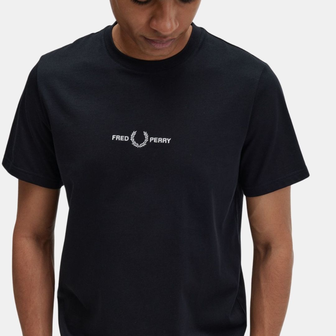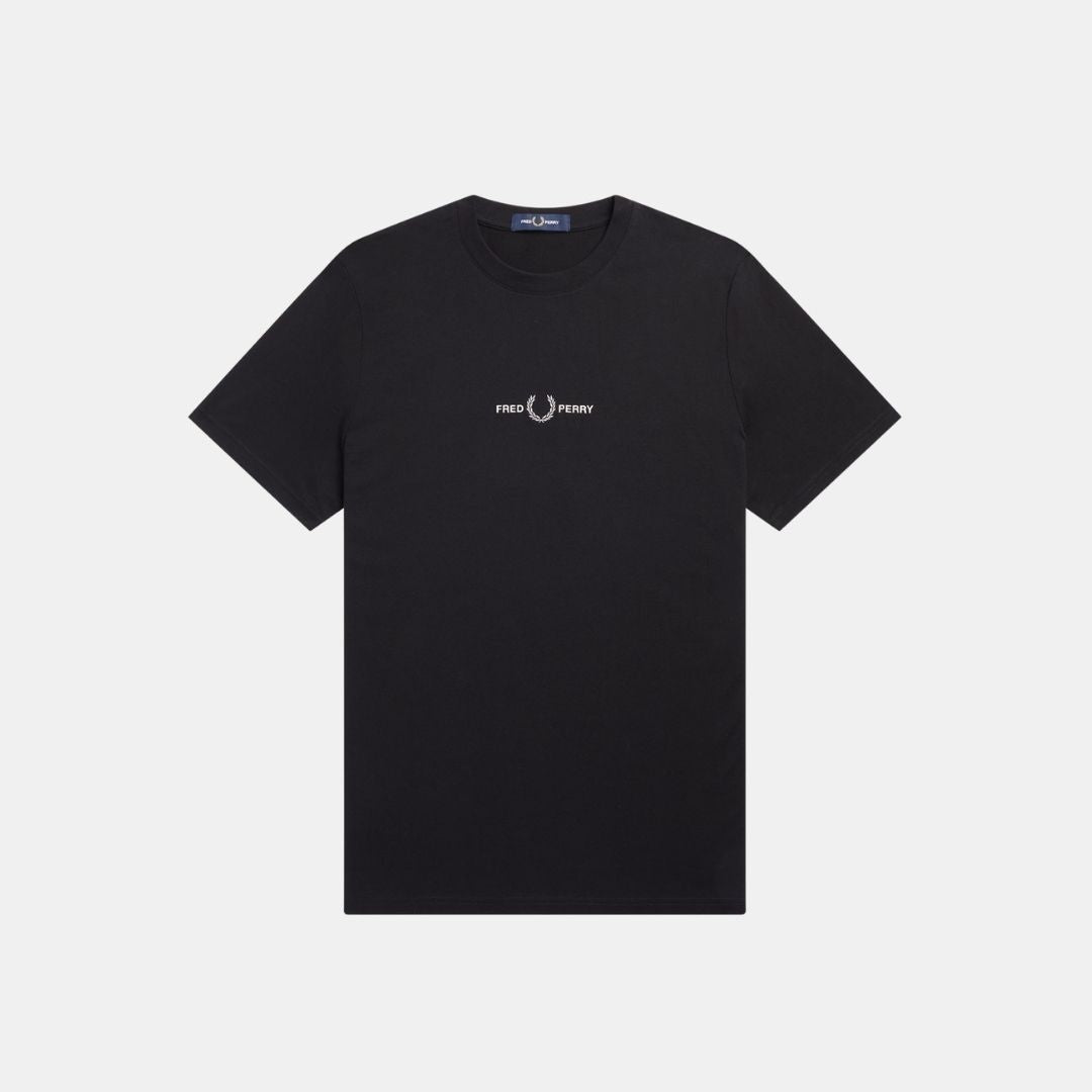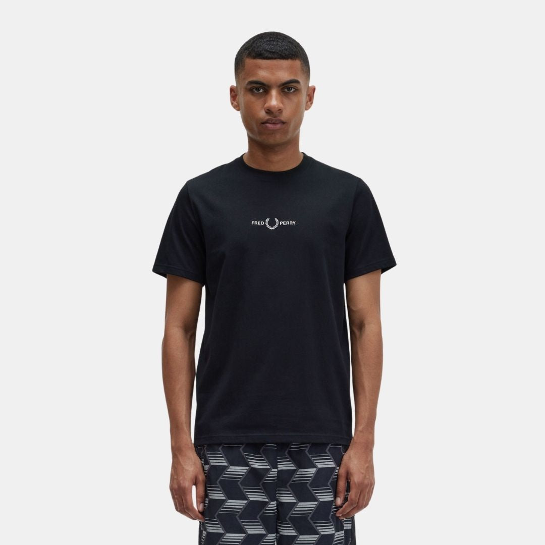 T-shirt de gola redonda em jersey de algodão, desenhada com bordado gráfico no peito e marca impressa na parte de trás.