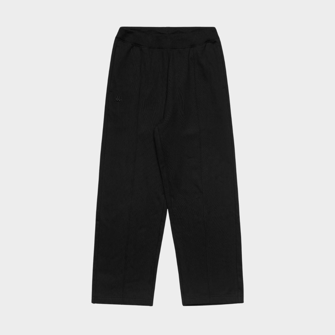 Calças direitas para homem em felpa cardada. COMFORT FIT. Cintura elástica canelada, bolsos laterais, vinco na parte da frente. Logótipo Omini bordado tom sobre tom na parte da frente e escrita Kappa em cursiva bordada no bolso traseiro.