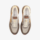 Ténis Mick confeccionados com uma mistura de materiais e peles de qualidade. O modelo está confeccionado em tom castanho para um estilo casual. A sua icónica silhueta está adornada com o logótipo da Premiata.